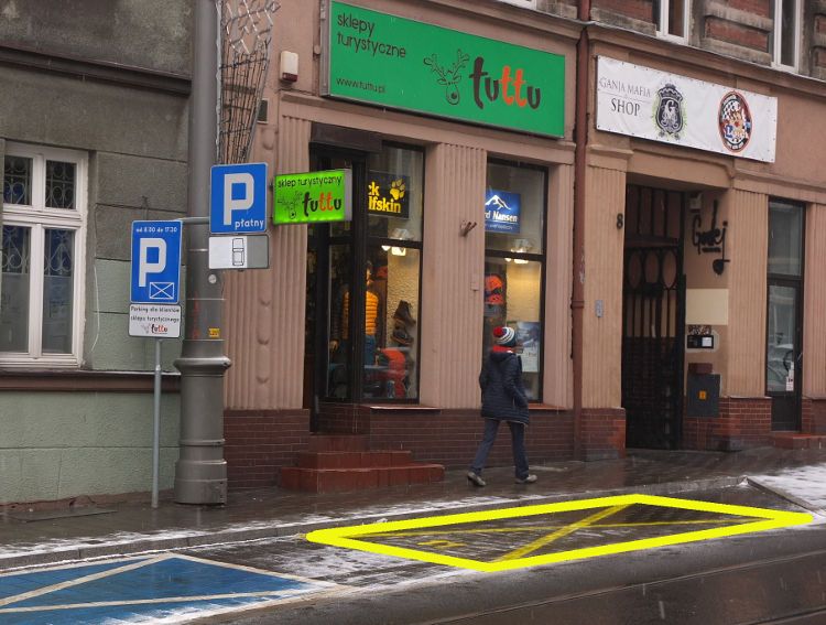 Przed pierwszą witryną czekaja na Was koperta parkingowa.